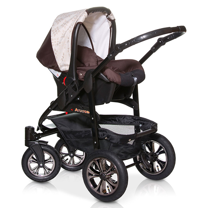 очень легкая и маневренная. Рама алюминиевая, с надувными колесами, передние колеса поворачиваются на 180°. Модули могут быть установлены на раму по ходу или против хода движения. Подголовник люльки регулируется в трех положениях, а спинка прогулочного блока в четырех. Ручка, встроенная в капюшон, позволяет легко снимать люльку с рамы и использовать как переноску. Дугообразные полозья на дне люльки предполагают ее использование для укачивания ребенка. Сиденье прогулочного блока оснащено ремнями безопасности, защитным бампером и регулируемой по высоте подножкой. Входящее в комплект автокресло рассчитано на детей от 0 до 10 кг, его удобно использовать в качестве переноски благодаря регулируемой ручке. Автокресло также оснащено ремнями безопасности, регулируемым капюшоном и чехлом для ножек.